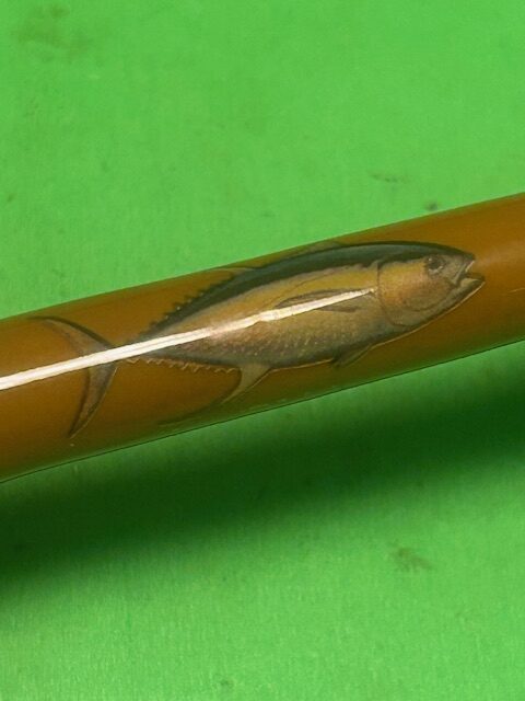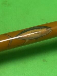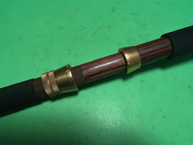 - Reel Seat: Wood grain looking reel seat with gold anodized aluminum hoods and a Tuna sleeve
