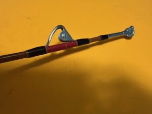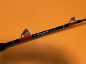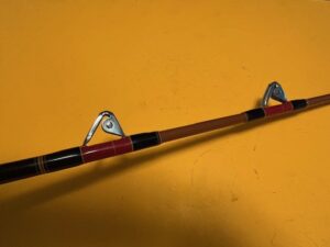 This is a great stand up trolling rod for stand up fishing for big big Tuna and other extra large saltwater big game fish. This is a short rod with an extra long foregrip and a short rear grip for putting a lot of pressure on big Tuna and other big fish like Billfish and Grouper using 50 to 100 pound test line.