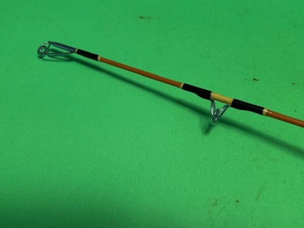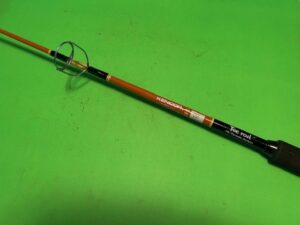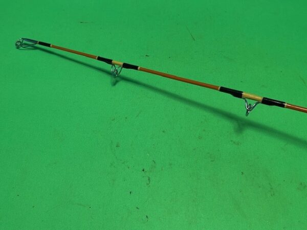 This is a very high quality Japanese orange Kencor “Tee rod” spinning fishing rod that is built to last a lifetime and then some. This is an ideal fishing rod for throwing small live bait, for cut bait or for throwing lures for Albacore, Bass, Catfish, Dorado, Grouper, Halibut, Lingcod, Redfish, Snapper, Snook, Stripers, Tuna and Yellowtail. You can match this rod up with a Penn Spinfisher 450SS to 650SS or an equivalent size Shimano spinning reel spooled up with 10 to 30 pound test line. A great fishing rod for fishing heavy freshwater and light saltwater fishing inshore or offshore. The Kencor Tenlew Magnaglas series rods in Japanese orange are the top of the line fishing rods that Kencor has ever made and they are the Queen of the Fleet.