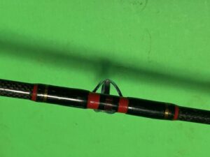 • Wrapping: Red, gold and black wrapping on a black graphite rod blank