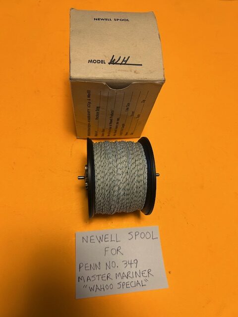 This is a Newell “Wahoo Special” black anodized aluminum spool for your Penn Master Mariner 349 fishing reel that includes the original box. The spool is a black anodized aluminum that is in excellent condition and is spooled up with brand new 60 pound test Dacron fishing line ($50 Value).