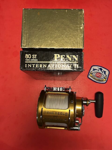 • Penn International 80ST 2-speed fishing reel with the original box & a Penn patch