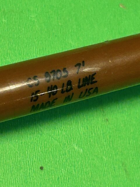 A rare and hard to find Sabre by Penn 7 foot 15 to 40 pound rated spinning fishing rod that is Made in the USA.