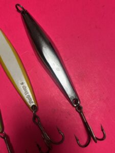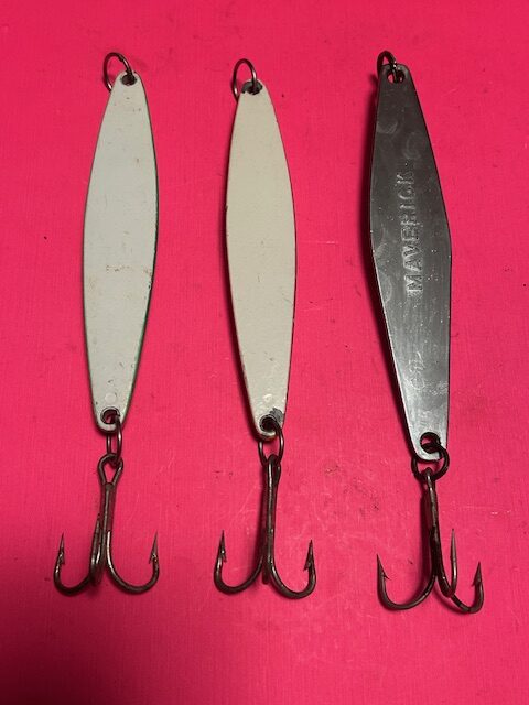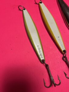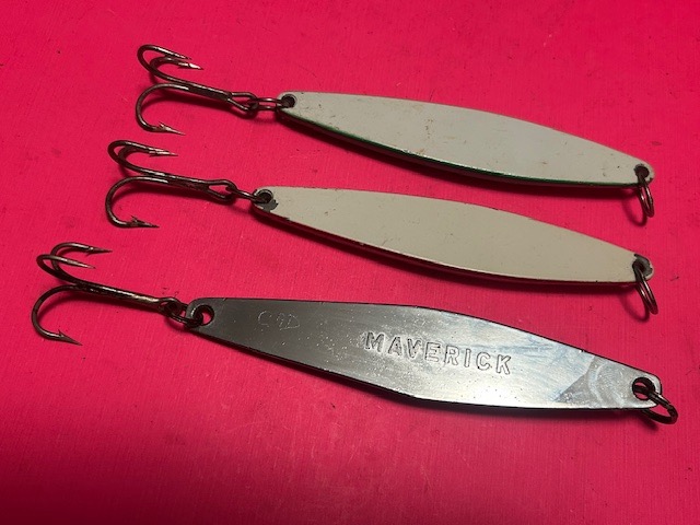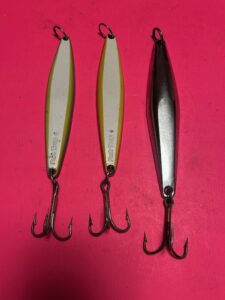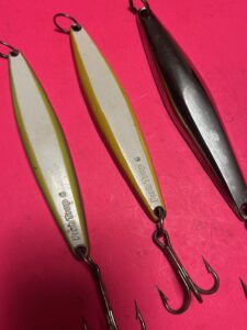 SET OF 3 VINTAGE HEAVY YO YO JIGS INCLUDING 2 FISH TRAP 6 & 1 VINTAGE MAVERICK